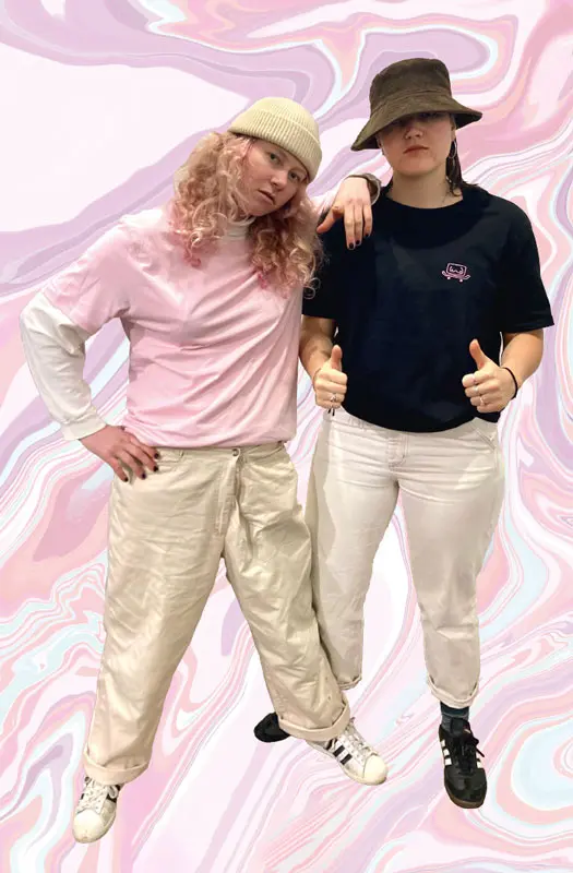 Wir wollten halt irgendwie auch anecken ein bisschen. Boobie eben weil wir weiblich gelesene Personen sind und uns auf die Sexualisierung von Brüsten beziehen wollten. Jeder hat Brüste, ist doch jetzt scheißegal, aber wir wollen nicht deshalb sexualisiert werden. Im Kontrast dazu, dass Boobies ja oft als weiblich gelesen werden, haben wir das nicht gegenderte Wort „Brettler“ hinzugefügt.