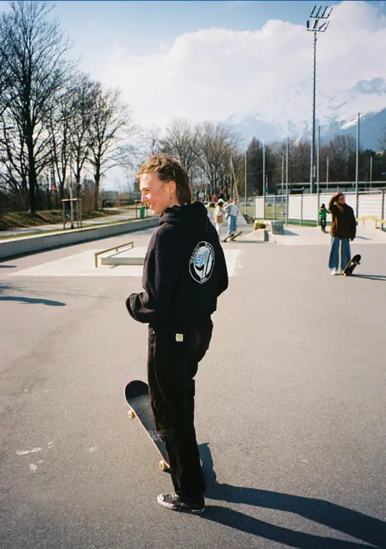 Also entstanden ist es mit uns Dreien, weil wir immer zusammen skaten gegangen sind. Es gibt sehr viele FLINTA*-Personen in Innsbruck, die skaten, aber sie sind sehr verteilt. Wir dachten uns, es wäre cool, eine Gruppe zu gründen, um sich zu vernetzen. Wir wollen gemeinsam ein Umfeld schaffen, wo sich FLINTA* wohl fühlen.